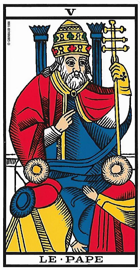 EL PAPA, es el gran maestro, al que muchas personas buscamos para que nos guíe en la tierra mirando al cielo, mirando al Universo. Une todo el conocimiento, no es un Dios, es un representante de lo Divino. Mira hacia el futuro de la humanidad y nos ayuda a crecer invocando la suma de experiencias antiguos y actuales. Su gran conocimiento espiritual es también el producto del largo recorrido que hizo en la tierra a través de sus años de vida.